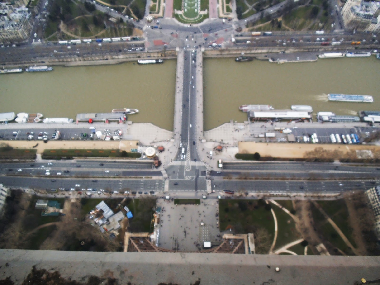 We then went for lunch and for another walk, and decided to come back to go to the top of the tower. The weather hadn't gotten much better, but we figured that it was the best that we would get that day. So, we went directly to buy our tickets and went on our voyage to the top! The beginning of it was awesome- we took the first elevator which went up the leg. So we went up at the angle of the leg, which led us to the first floor. Our first glimpse of Paris from above was amazing, but we really just couldn't wait to get to the very top. We spent about 20 minutes admiring the view and taking in the fact that we were in the Eiffel Tower.